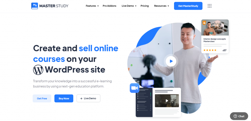 تُعد إضافة Masterstudy من أفضل إضافات الووردبريس التي تعمل على تحويل نظام الووردبريس الأساسي إلى منصة تعليمية ويتوفر منها إصدار مجاني تستطيع الاعتماد عليه في تجهيز منصة تعليمية متوسطة المميزات وإصدار مدفوع مدعم بمجموعة كبيرة من المميزات التي تعمل على تطوير المنصة التعليمية.