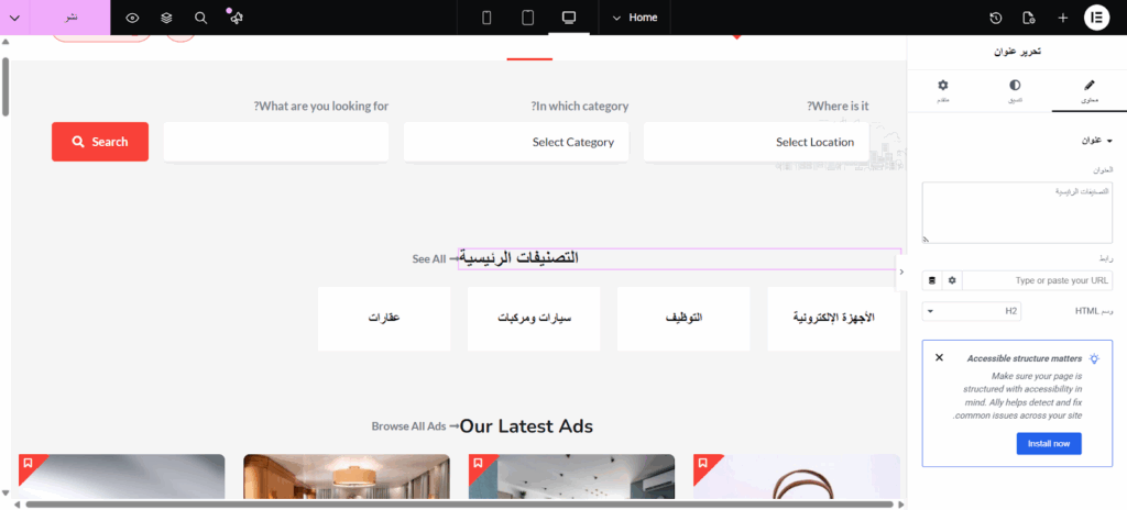 إضافة تصنيفات الإعلانات المبوبة
