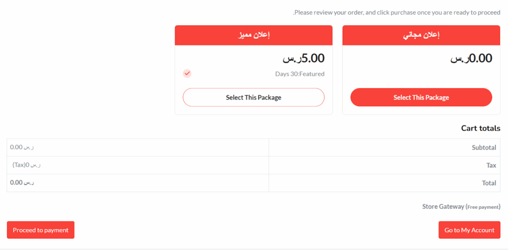بعد ذلك ستظهر له الخطط، ويمكنه اختيار الخطة التي يريدها وينقر على زر Proceed to payment ليتم إرسال الإعلان إلى المراجعة.
